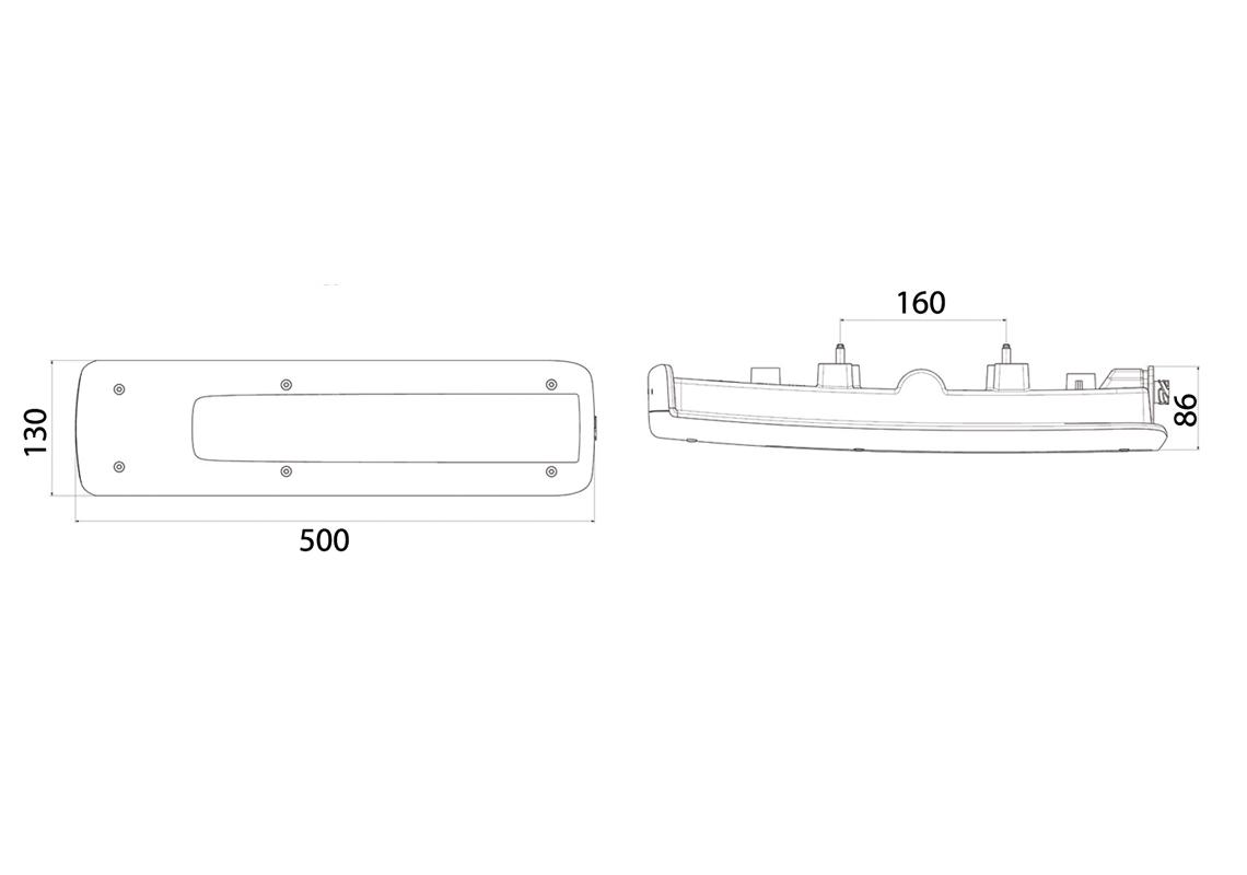• Rozmery: 500 × 130 × 86 mm,